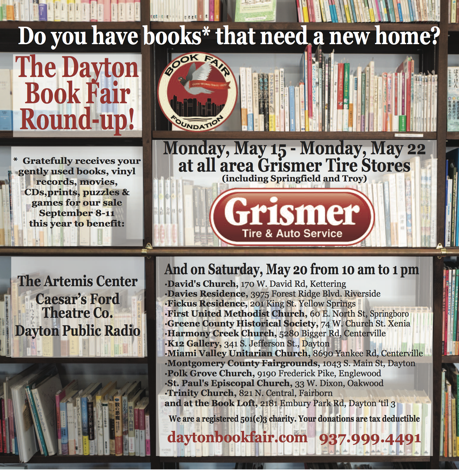 The Book Fair Foundation is a 501c3 registered charity, and your donations are tax-deductible. Proceeds from this year’s sale benefit Artemis Center, Caesar’s Ford Theatre Company and Dayton Public Radio.