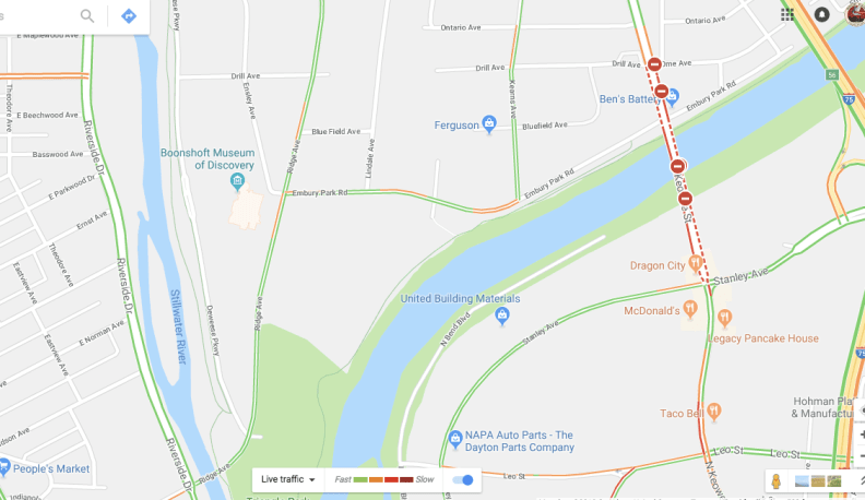 This map gives you a couple of options. If you’re coming from the South, we recommend that you do one of two things: either stay on I-75 to Wagner Ford and turn south on Dixie. Follow the DETOUR signs to turn right on Drill St. and continue to Kearns, where you turn left. (Do not turn left onto Bluefield. It is a private road and full of potholes. Also the people who own the road would rather you didn’t.) Go past the “Road Closed” sign– we are the second building on your left, next door to the Metro Parks Ranger Station.